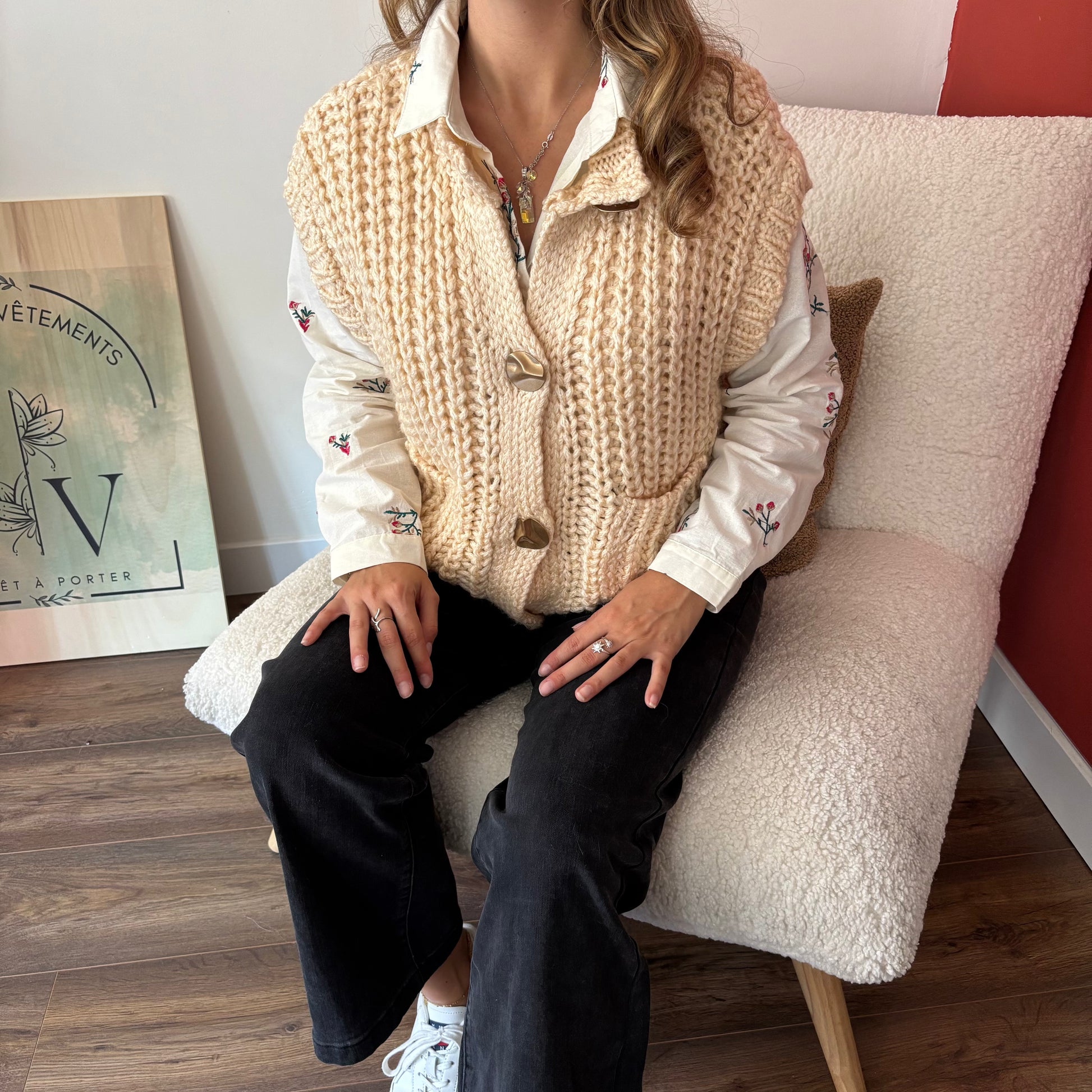 - Gilet sans manches en maille épaisse